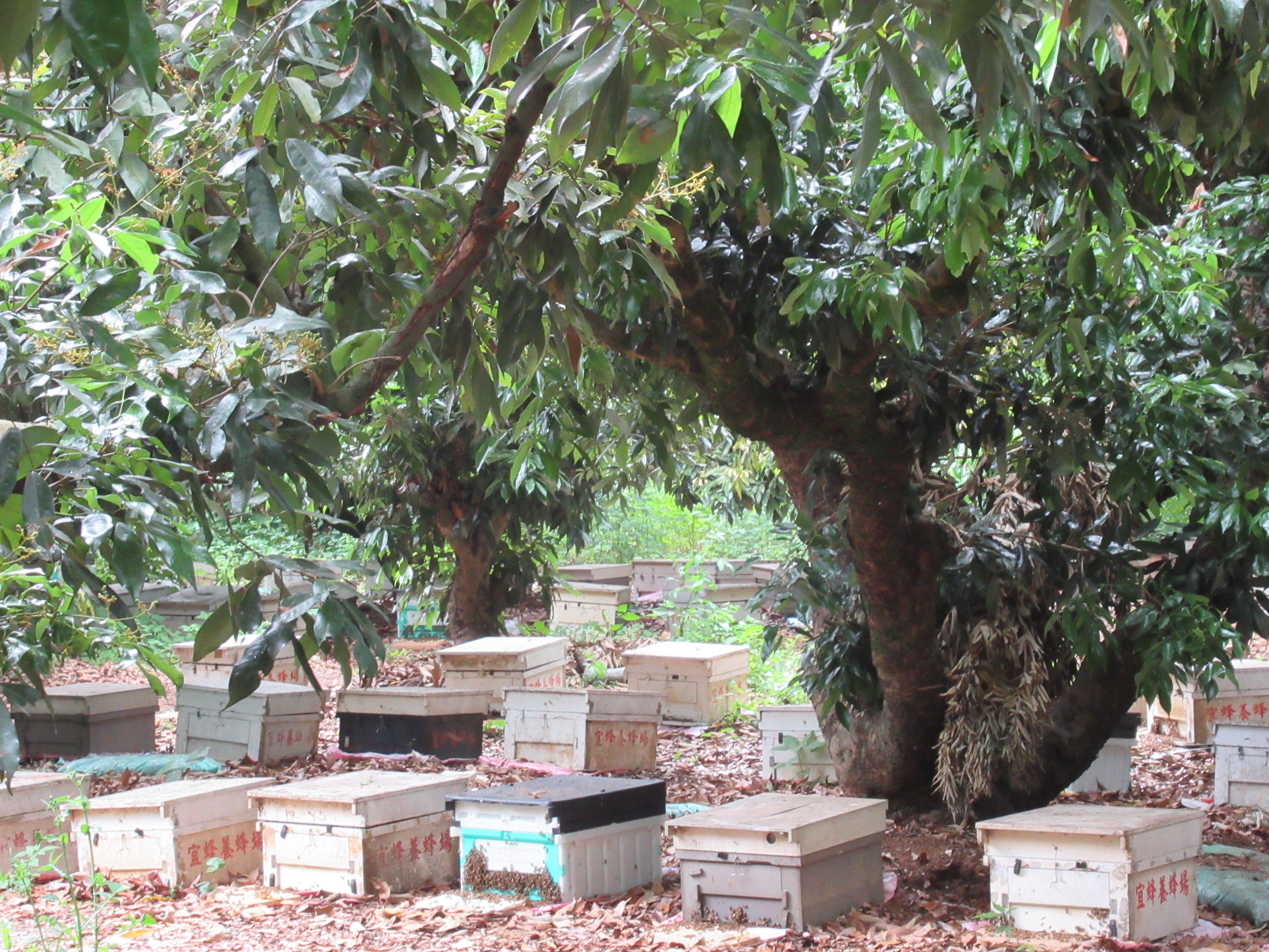 Beehives in a Grove of Longan Trees, near Taichung, Taiwan.